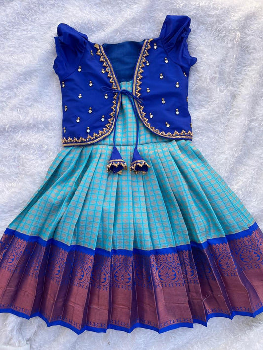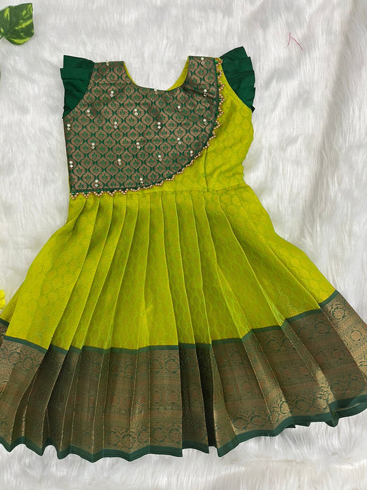 Light Green ~ Grand Banaras Silk Aari Work Frock