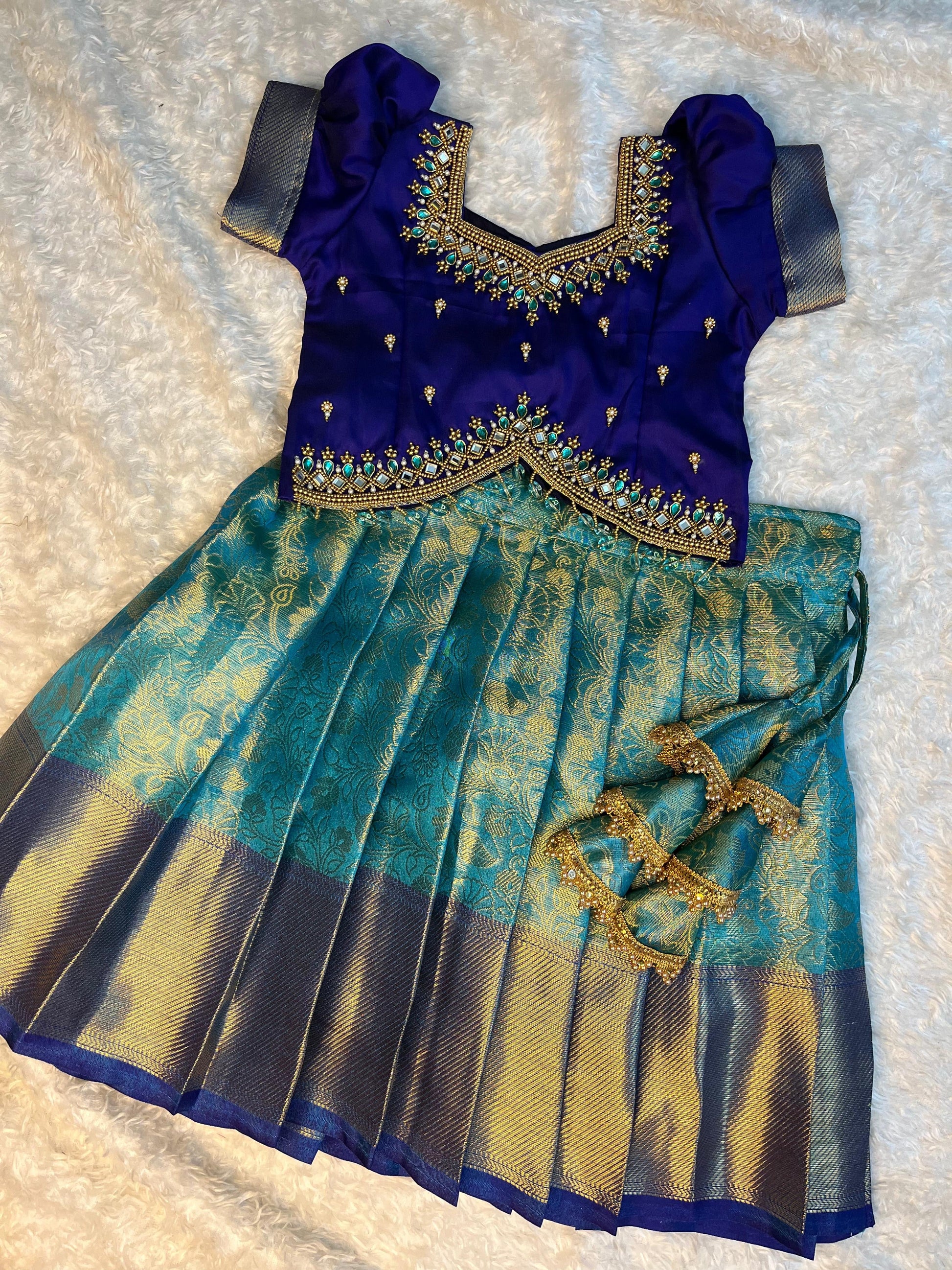Blue Work: Premium Aari Work Pattu Lehenga