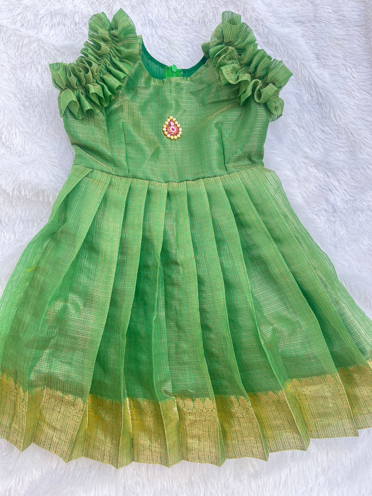 Enhance your child’s wardrobe with these stunning traditional dresses, perfect for festive occasions and special events. Made with Tissue fabric, each dress features intricate detailing and vibrant colors to make your little one stand out.