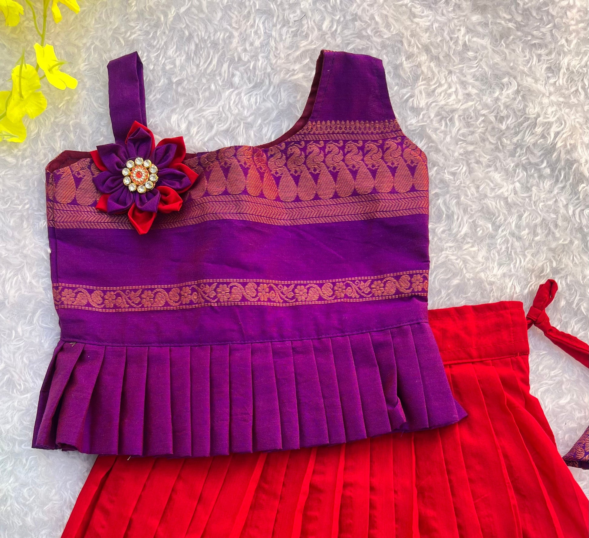 Embrace elegance with this Gleaming Grace Skirt & Top set. Made with comfortable cotton lehenga, it features a stylish sleeveless design. Perfect for any occasion, this set will add a touch of grace and sophistication to your wardrobe. Elevate your style and make a statement with Gleaming Grace!