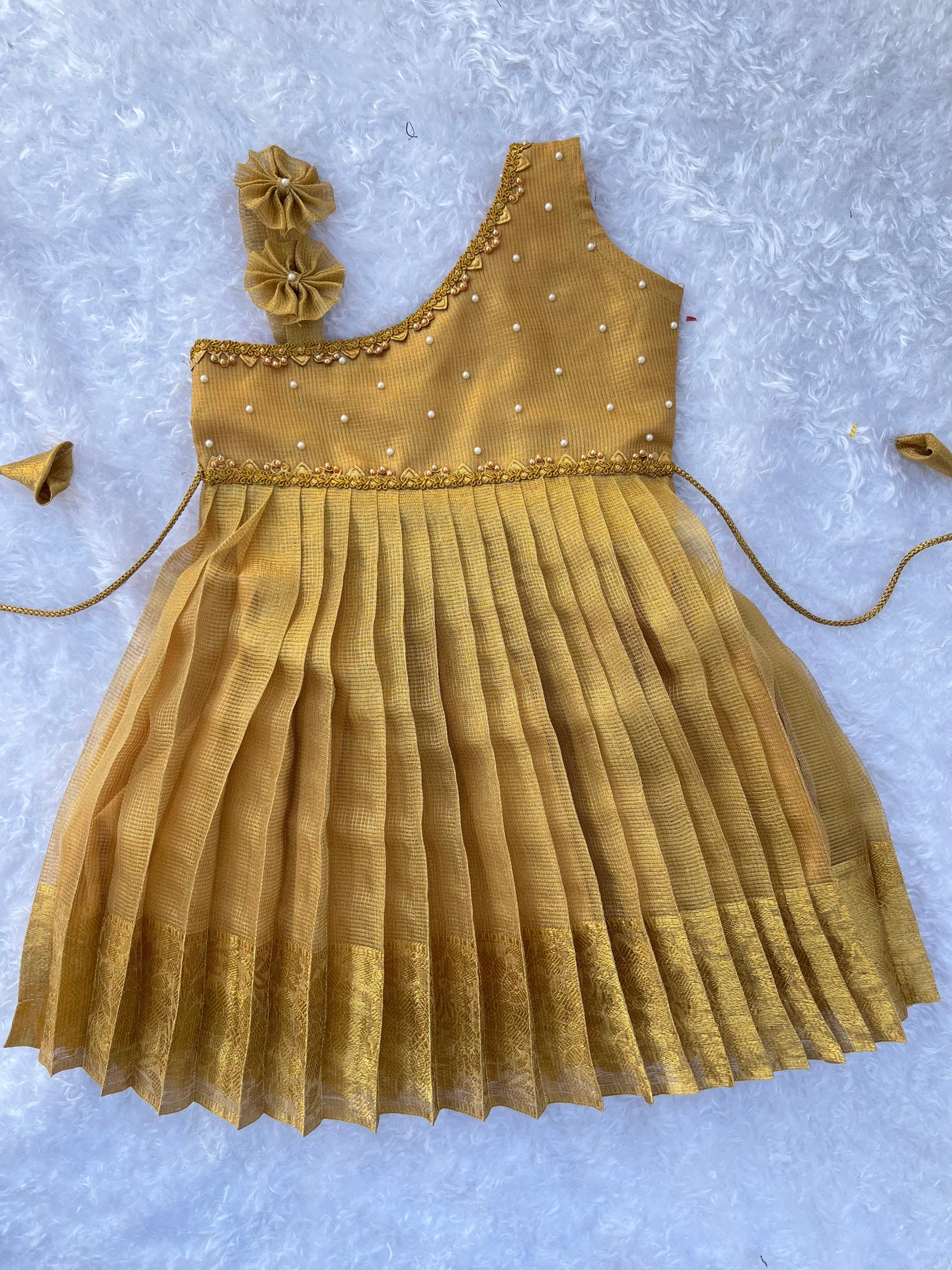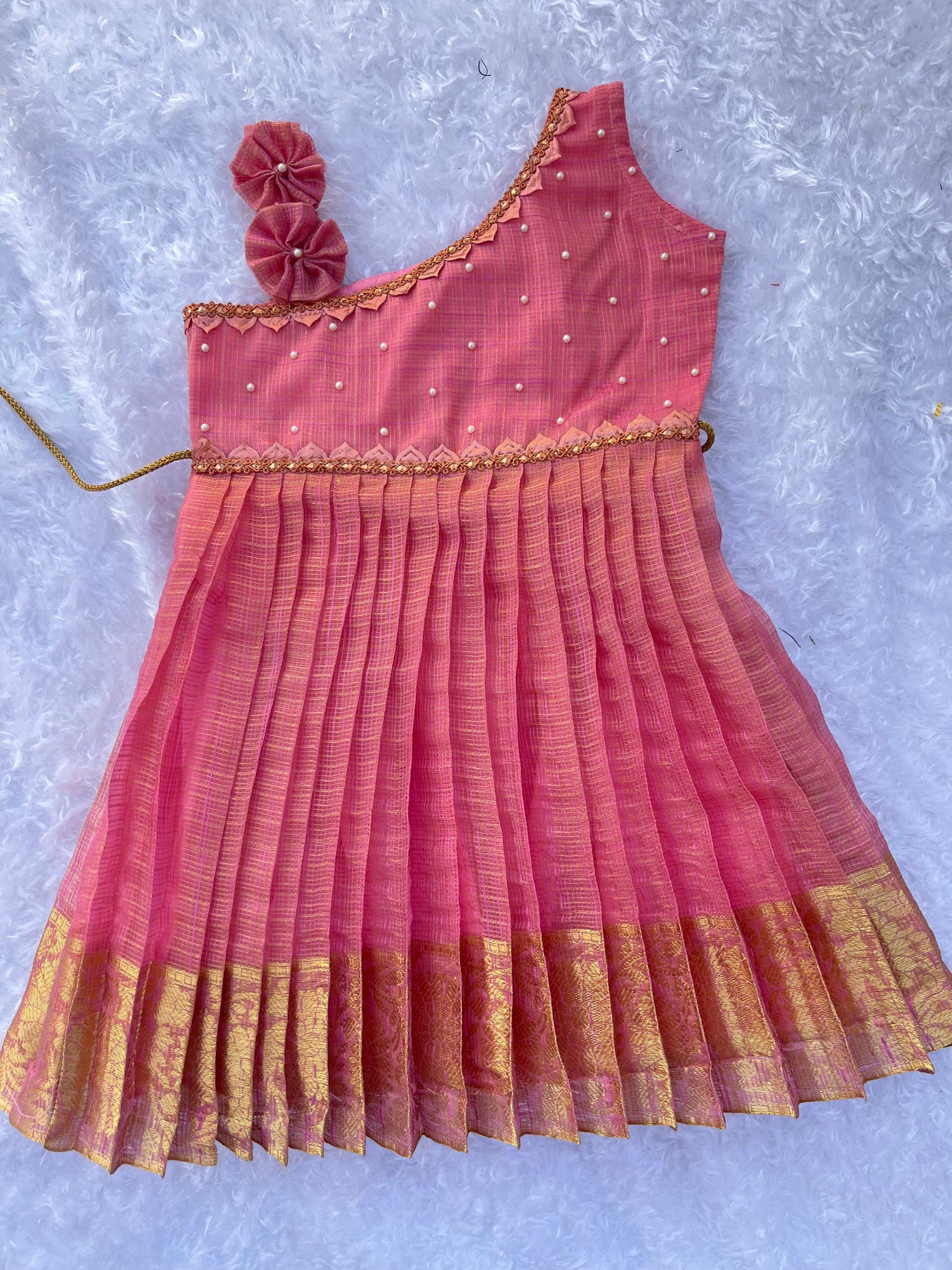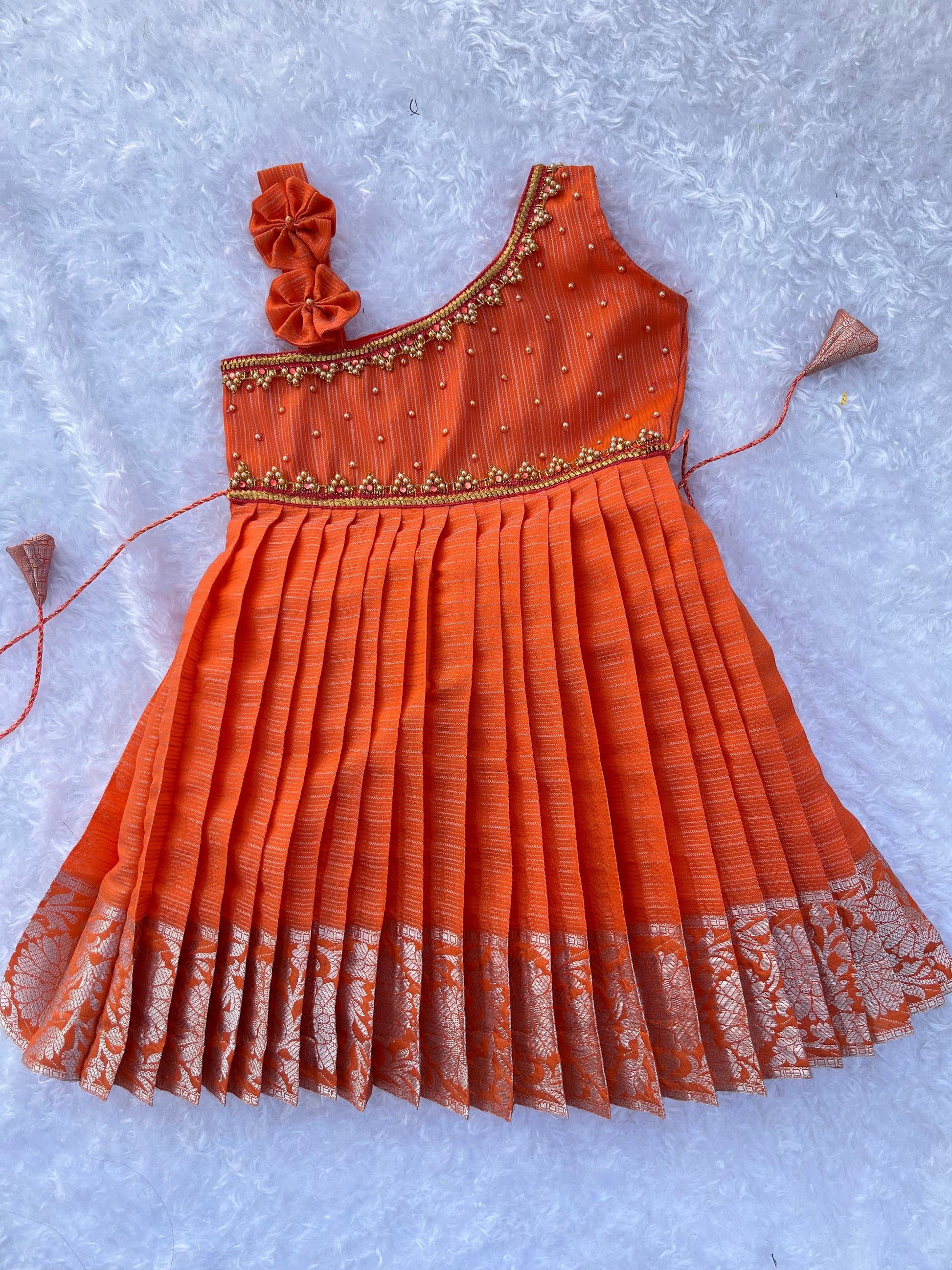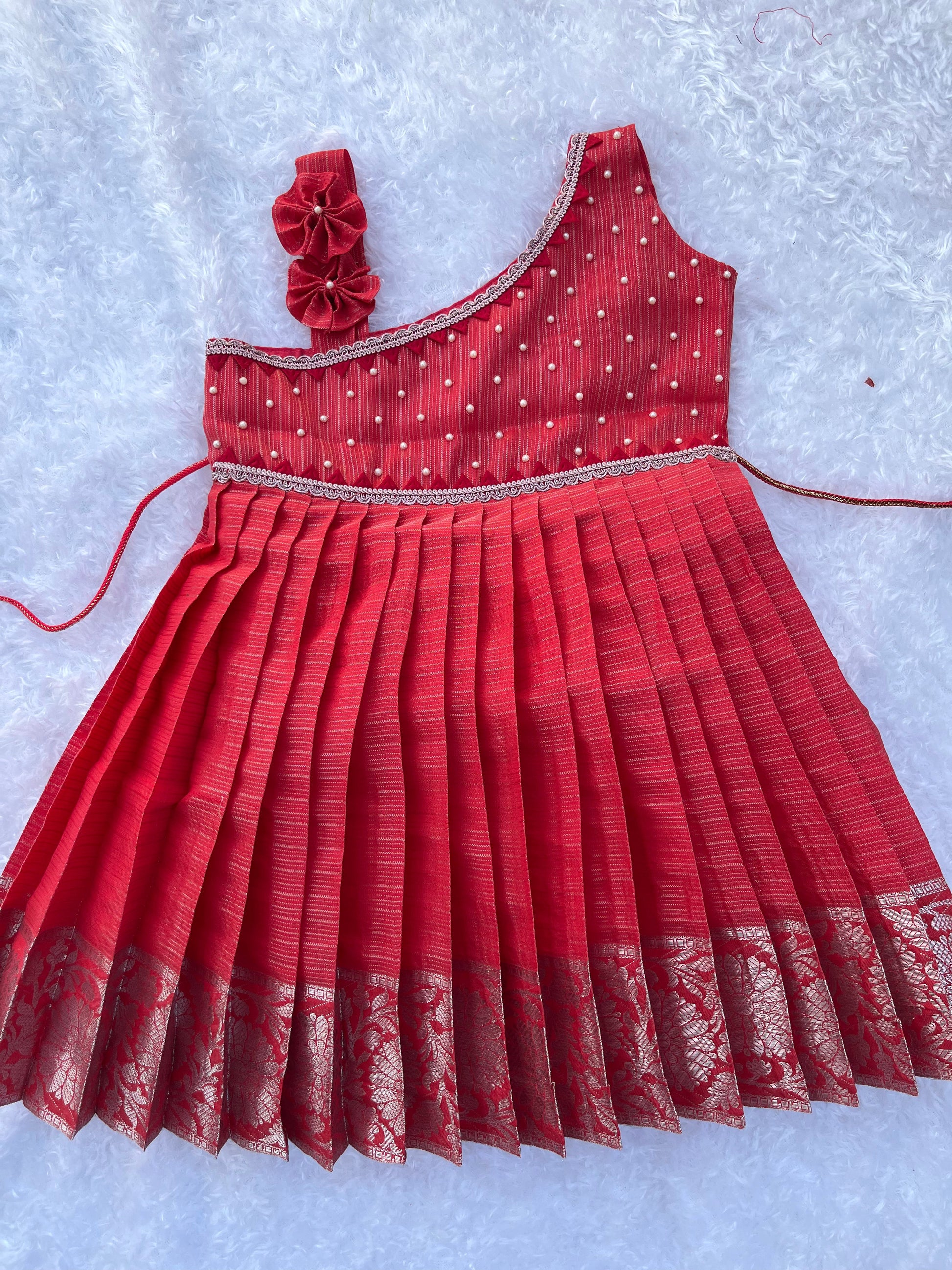 This semi silk one shoulder frock will take your breath away. From the shoulder tie to the vibrant colors, it’s designed to make you stand out in the crowd. Look gorgeous and feel confident wherever you go!