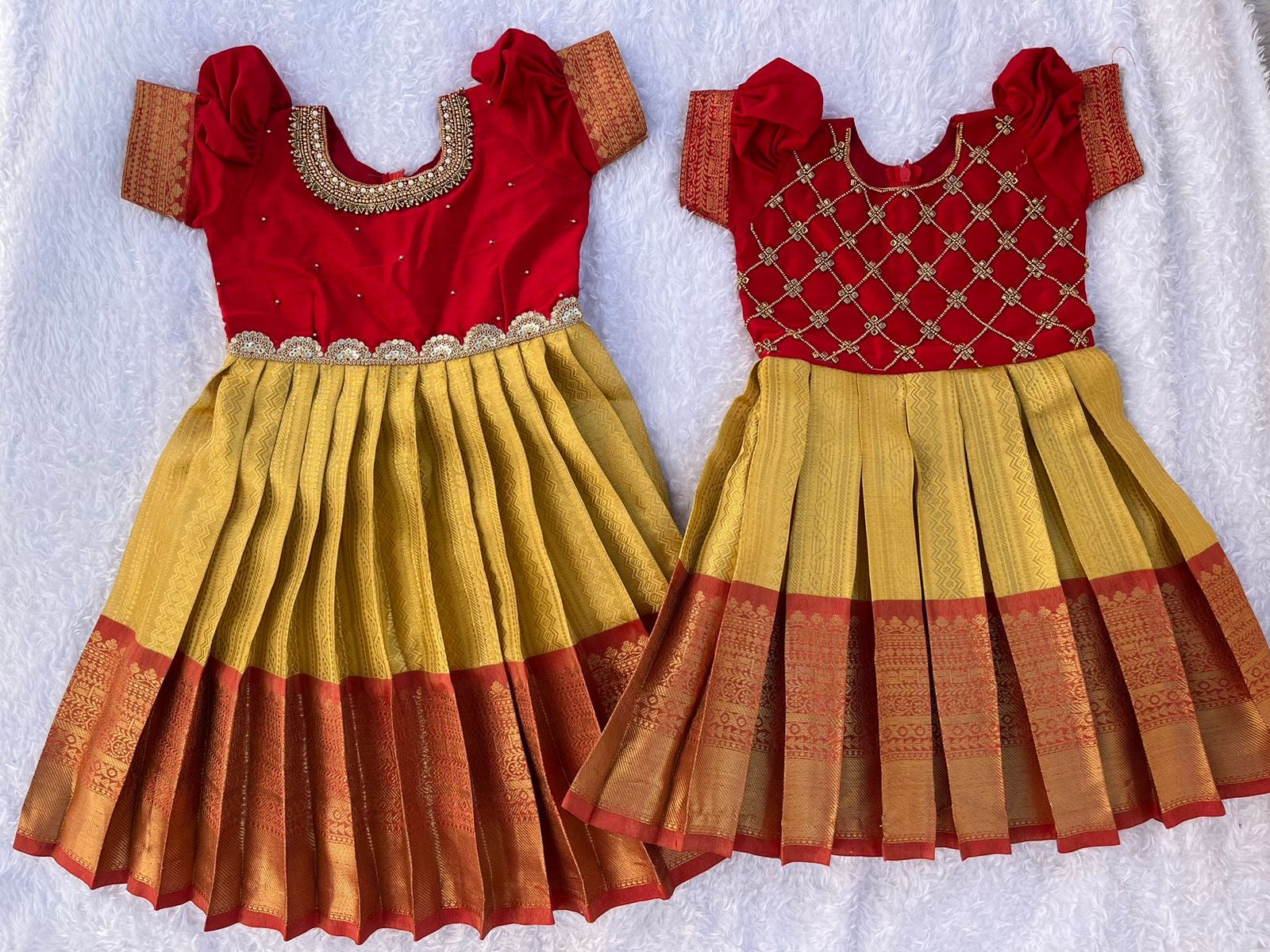 These elegant semi-silk frocks are perfect for special occasions, bringing a blend of traditional Paithani designs with modern style.